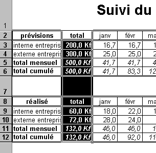 Le total cumulé =SOMME(total_prévisions_janvier:L(-1)C) où total_prévisions_janvier