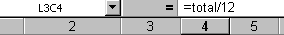 | -2- Dans les cellules ligne3 et ligne 4 à partir de la colonne 4 mettre la formule =total/12 |