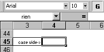 | remarque : les cellules en ligne 9 et ligne 10 dans lesquelles des données seront saisies et qui ne possèdent